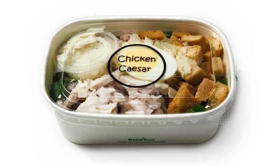 Chicken breast, crispy bacon, caesar dressing, cos lettuce, croutons, boiled egg & parmesan cheese. Serving Size: 385g, Store at: Store Refrigerated at or Below 5 degrees celcius, Shelf Life: 3 days