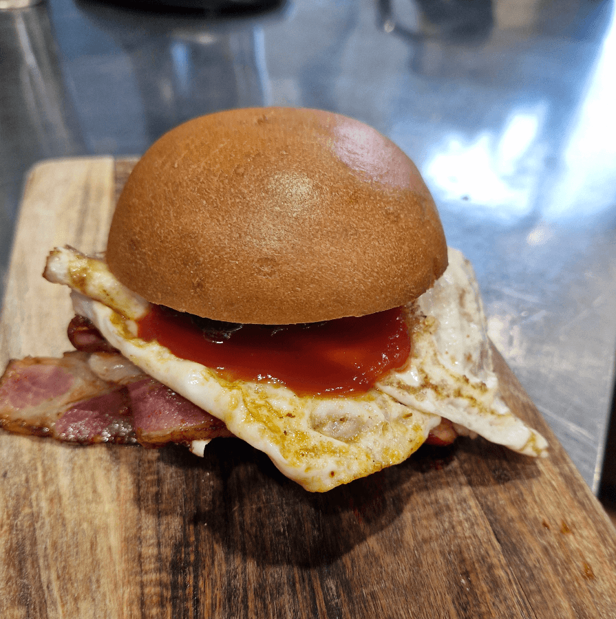 Fluffy eggs, crispy bacon, sweet cherry tomatoes, fresh baby spinach, and a zesty sauce on sourdough.