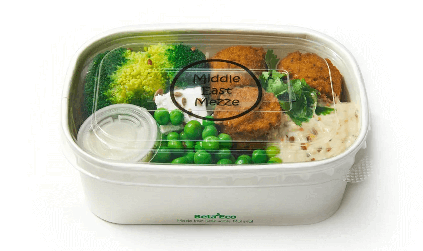 Middle East Mezze Salad: Falafel, feta cheese, garden peas, broccoli florets, toasted seeds, fresh coriander, mixed quinoa, brown rice, red & white cabbage, baba ganoush & French dressing. Serving Size: 450g. Store at: Store Refrigerated at or below 5 degrees celcius Shelf Life: 3 days. ALLERGENS: Contains Milk,Contains Sesame Seeds