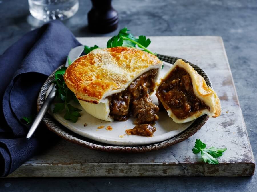 Chunky beef pie with tender, flavorful meat in a crisp crust.